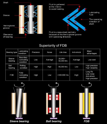 Innovative Fluid Dynamic Bearing delivers longer life span with higher precision rotation and anti-shock function