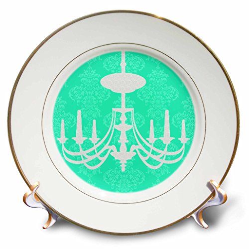 3dRose cp_60984_1 Gray Chandelier Against a Turquoise Damask Background Porcelain Plate, 8-Inch