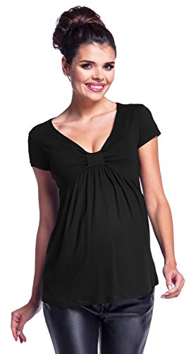 Binding : Apparel Product Description Stay chic throughout your pregnancy with our Zeta Ville maternity collection - simple and comfortable maternity clothing for every occasion. Functional and comfortable empire waist maternity top with bow bust, pleated front, short sleeves and deep V-neck. Designed in stretchy jersey the T-shirt offers a flattering fit at every stage of your pregnancy, and thereafter. The neckline visually slims the silhouette, while the folds under the breasts provide adequate space for the growing belly. It fits in all the right places thanks to our soft fabric while providing the coverage you really desire. Super stylish and significantly versatile, it's chic enough for party or work, and simple enough for everyday too.