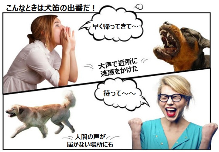 このホイッスルを吹けばワンちゃんは安心します。