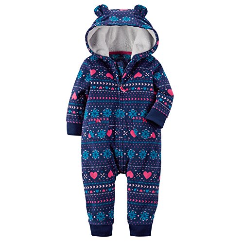 Warm, cozy and super easy to wear, our sherpa lined hood with 3D ears jumpsuit features a two front pockets and fairisle fabric.