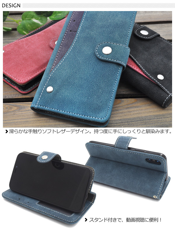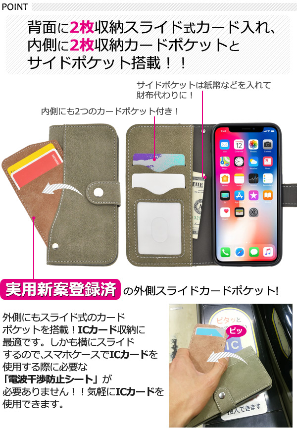 スライドカードポケット ソフトレザー手帳型ケース。
