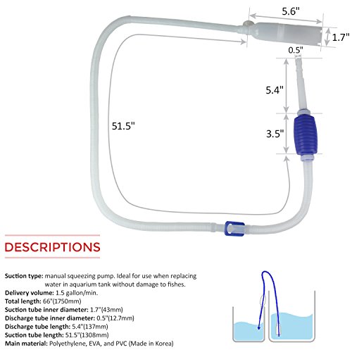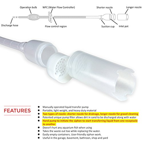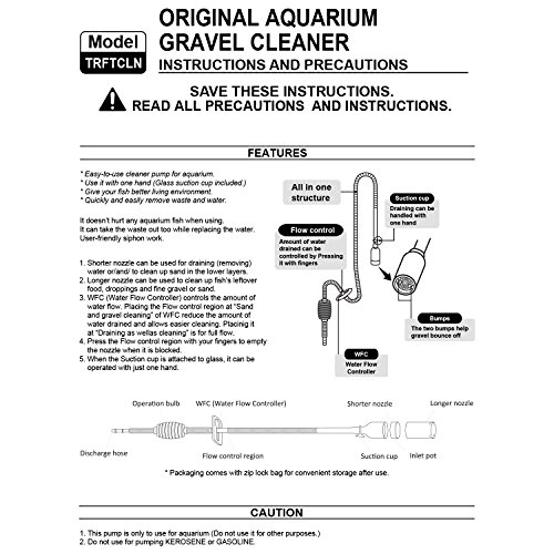 Genuine TERAPUMP Aquarium Cleaner Aquarium Fish Tank Gravel Sand Cleaner with Long Nozzle N Water Flow Controller - BPA Free (model: TRFTCLN)