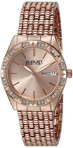 August Steiner Women's AS8177RG Rose Gold Crystal Accented Quartz Watch with Rose Gold Dial and Rose Gold Bracelet