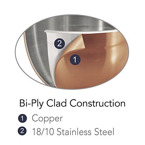 Bi-ply clad construction (18/10 stainless steel interior + copper exterior)