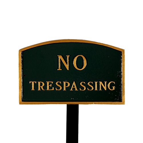 Montague Metal Products SP-7sm-HGG-LS Small Hunter Green and Gold No Trespassing Arch Statement Plaque with 23-Inch Lawn Stake