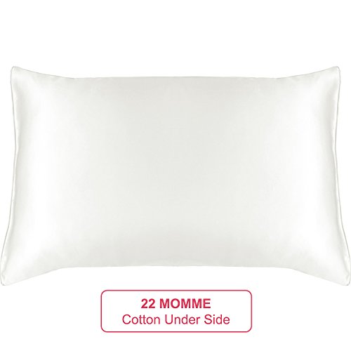 MYK 100% 22 Momme Silk Pillowcase Cotton Underside for Hair and Skin - Beauty Benefits Soft Breathable Anti Aging Prevents Wrinkles Hair Frizz - Machine Washable - Standard 20"x26" Ivory