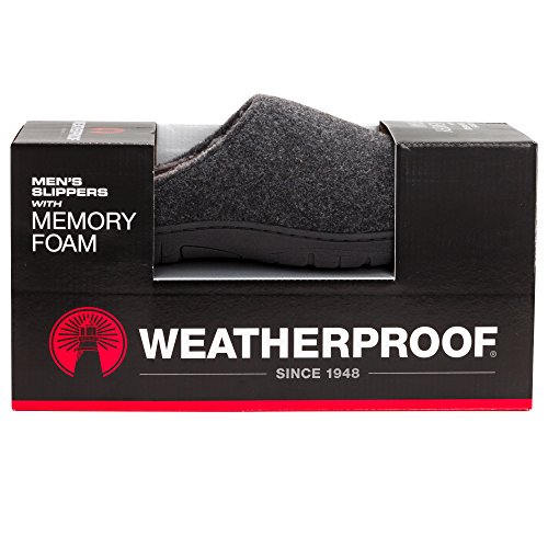 Studio : Weatherproof Publisher : Weatherproof Binding : Apparel Product Description This mens clog slipper by Weatherproof provides your foot with great support and comfort. Hardsole rubber bottoms allow this shoe to be worn indoor and outdoor. The textured bottom provide a slip-proof wear. Memory foam cushion will give your feel complete relaxation after a long work day. Get the look of luxury with this lightweight boiled wool slide on clog slipper for men 0