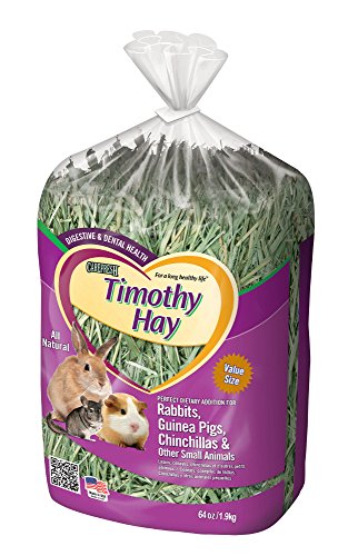 Our Carefresh Timothy Hay provides essential nutrients and minerals, as well as fiber to aid digestion and helps wear down the ever-growing teeth of small pets for proper dental maintenance. Timothy Hay is essential for rabbits, chinchillas and guinea pigs. This first-cutting hay from eastern Washington State means top quality for your pet, with UV packaging to preserve nutrients and color. Carefresh Timothy Hay is a great complement to Carefresh Complete Menu Small Animal Foods. Made in the USA!.Feature