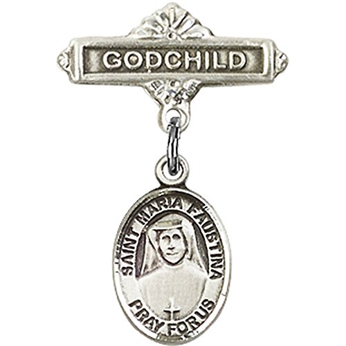 -. Title : Sterling Silver Baby Badge with St. Maria Faustina Charm and Godchild Badge Pin 1 X 5/8 inches