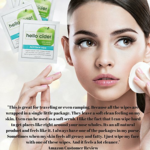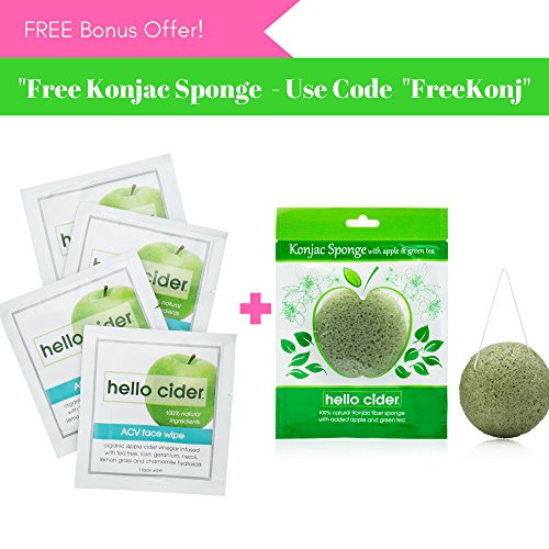 -. Feature : FREE Konjac Sponge today only! HELLO TO CLEAN & HEALTHY SKIN - Hello Cider Acne Kit is an exclusive natural non-comedogenic (no OILS) blend of ORGANIC APPLE CIDER VINEGAR. It contains alpha-hydroxyl & malic acids as potent antibacterial, anti-fungal, preventing pimples from forming as well as reducing the appearance of fine lines, wrinkles & aging spots. / GENTLE & EFFECTIVE - INFUSED WITH SIX PURE ORGANIC HYDROSOLS (not water w/ added essential oils) of TEA TREE , ROSE, GERANIUM, LEMON GRASS, NEROLI, and CHAMOMILE. Each one of our 100% natural & organic hydrosols are hand picked specifically to combat acne, clear blemishes, restore your natural pH level, hydrate, treat pimples, blackheads plus staying on all day at the perfect nature moisturizer. Non-comedogenic formula. / PURE 100% NATURAL ACNE FACE WIPES: we believe that 65% of what you put on your skin will absorb into your body. Therefore, you will not find paraben, phthalate, synthetic fragrances, alcohol, oils, synthetic preservative or any questionable ingredients. All Hello Cider products are formulated by our two scientist founders, tested by moms and teens, made in the USA. / YOU WILL LOVE THE EASE OF THESE: Hello Cider Acne Face Towelettes are great for traveling (no messy bottle through security), camping, perfect on the go. Each wipe is individually wrapped for a quick, easy and effective use. / 100% SATISFACTION or your money back. "No need for expensive chemical filled face cleaners/moisturizers, this Apple Cider Vinegar wipe will do it all for you!" Hello Cider Customer Review.