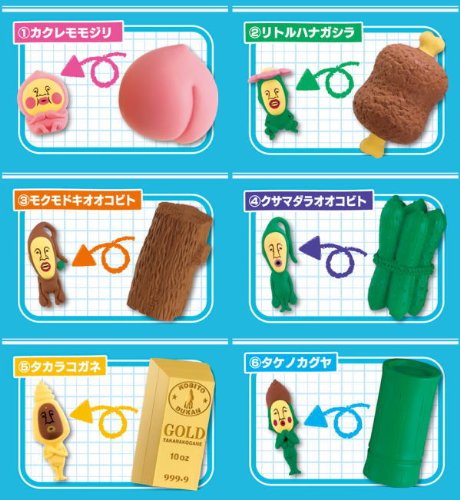 Each has hidden dwarfs inside the outer eraser such as peach and cucumber.
