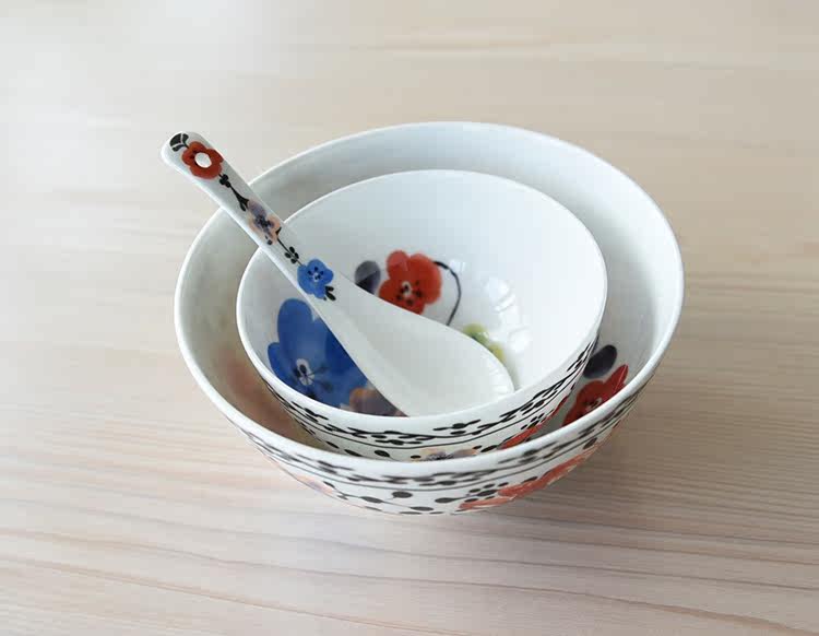 骨瓷米饭碗 面碗 创意高档 欧美 家用陶瓷 可爱 瓷碗 小勺子 釉中