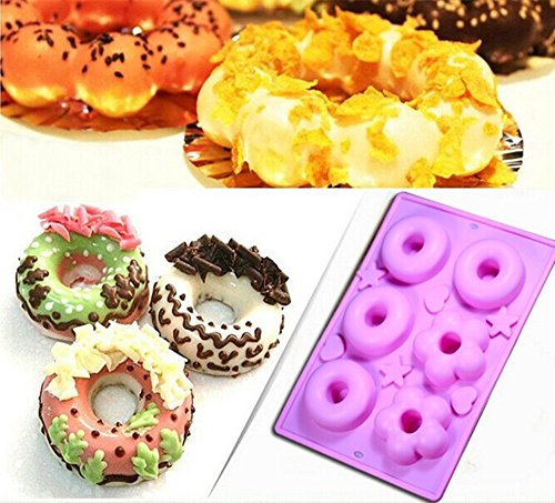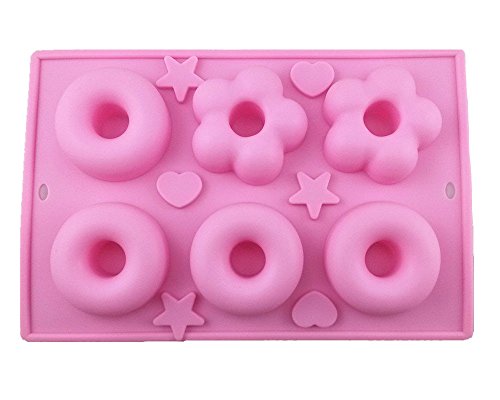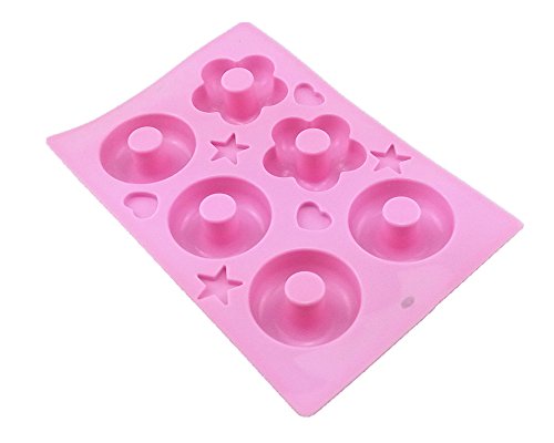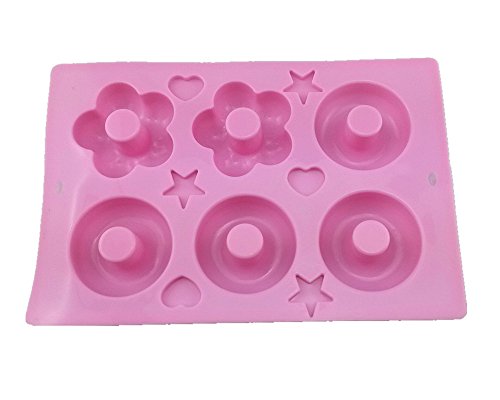 yueton 6 Cavity Silicone Donut Pan Tray with Heart and Star Mold, Doughnut Maker, DIY Baking Tool Biscuit Cookie Cake Chocolate Mold