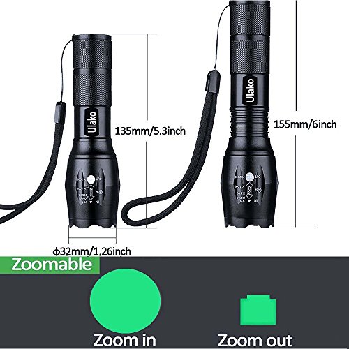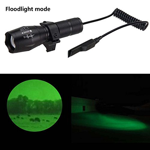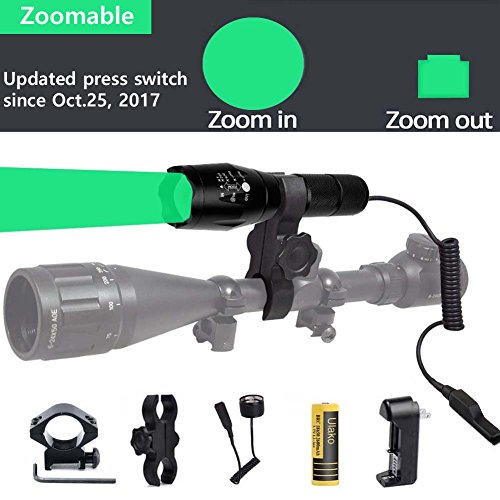 Ulako Green Light 300 Yards Spotlight Flood Light Zoomable Tactical Hunting Flashlight Torch for Hog Pig Coyote Varmint Predator Rifle