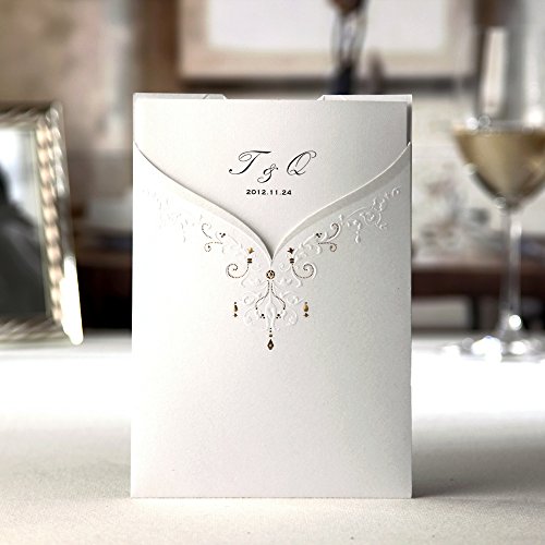 Wishmade 50X Groom Bridal White and Black Laser Cut Wedding Invitations Invites Card Stock For Engagement Party Bridal Shower CW2011