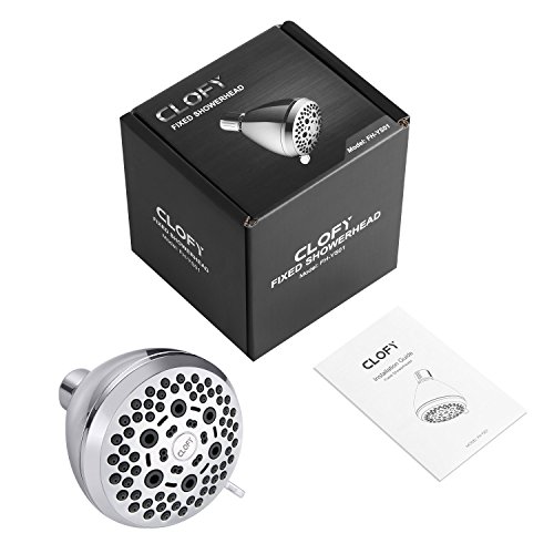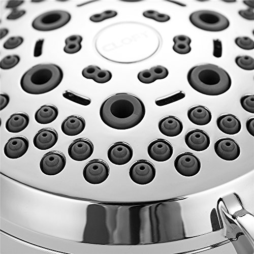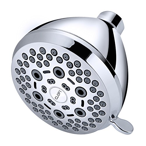 CLOFY High Pressure Rain Shower Head with 6-Setting, Water Saving Rainfall Shower Full-Chrome Finish