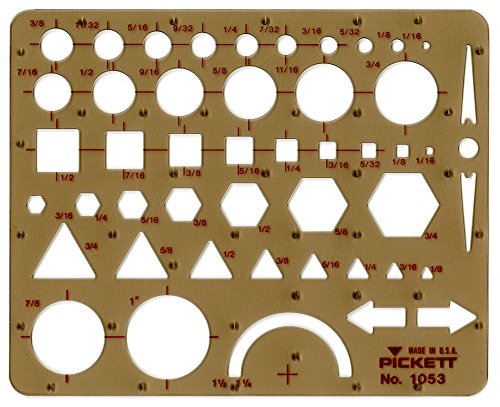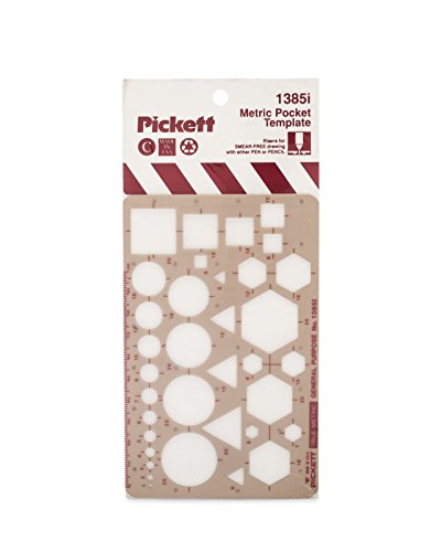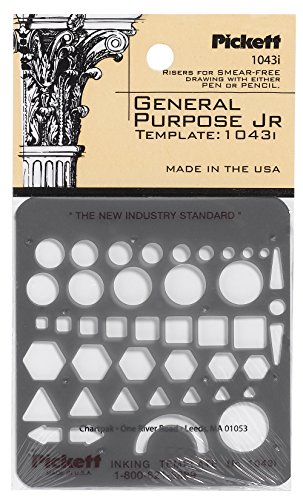 Pickett Metric General Purpose Template includes circles, squares, triangles, hexagons and isometric ellipses in metric sizes. Circle diameters range from 2mm to 30mm. Built-in risers and smooth apertures reduce smudged lines. Made in USA. Pickett Templates - for all your drawing template needs.Feature