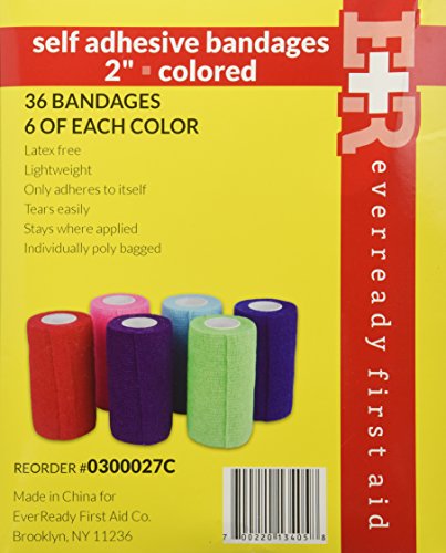 Ever Ready First Aid Self Adherent Cohesive Bandages, Rainbow, 36 Count