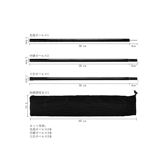 원본상품명: GEEDIAR テント タプ ポル 伸縮 交換 200cm×2本 キャンプ 用品 ウイング 天幕 ポル 納袋付