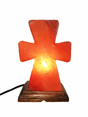 Homipooty Himalayan Hand Carved Natural Pink Crystal Cross Shaped Salt Rock Lamps, Wooden Base and Dimmer Switch, Air Purifier for Office Home Bedroom Babyroom,8-10lbs