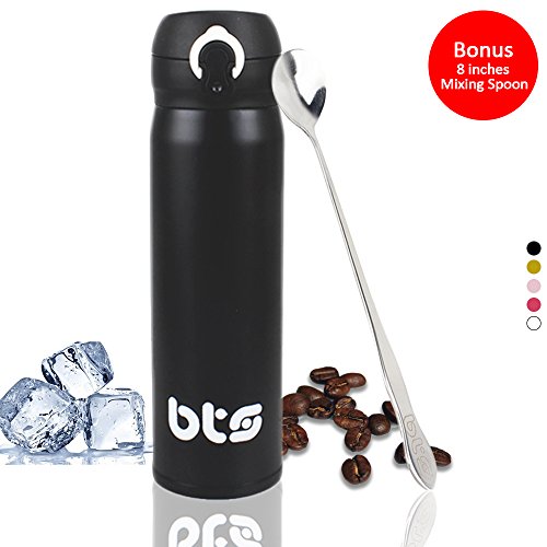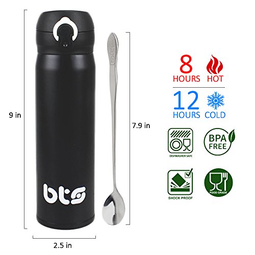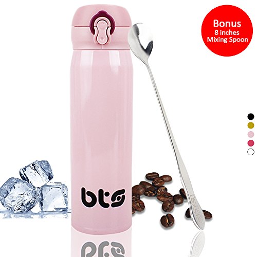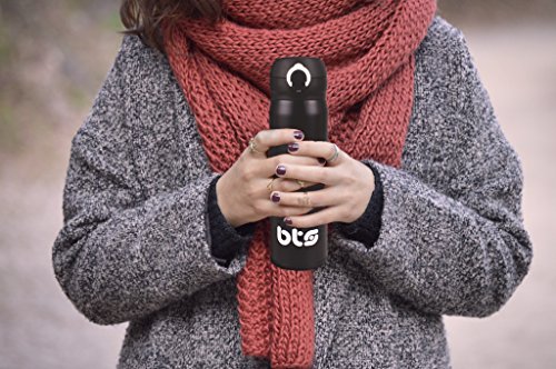ERGONOMIC DESIGN AND SEAL LID: Bts travel mug provides easy to use in daily activities. You can open with one hand by pressing button and sup. Definitely it can't leak out through lock system and you don't encounter a bad surprise.