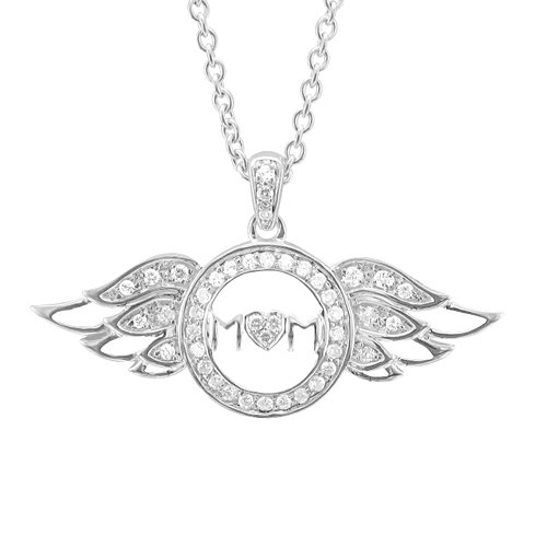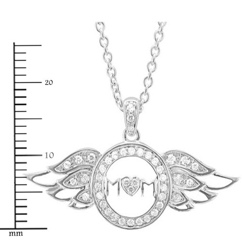 -. Title : Sterling Silver Heart Love Angel Wing Mothers Day Diamond Pendant Necklace (1/4 carat)