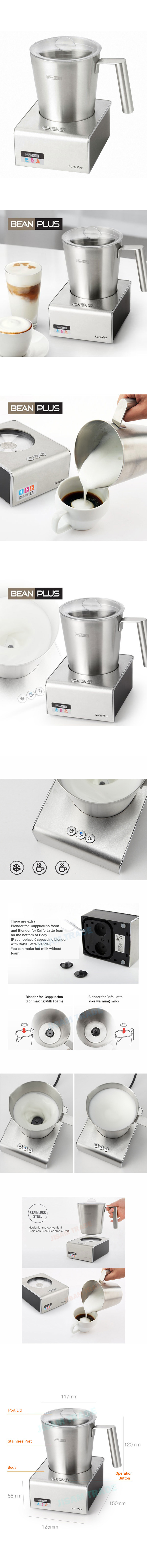 Beanplus Latte Art Electric Stainless Steel Milk Frother can make Fluent cold,warm and hot Milk Foam with just touching one button,which enables to make Various Recipe such as HOT&ICE Cappuccino,cafe Latte,Macchiato.