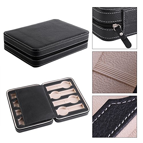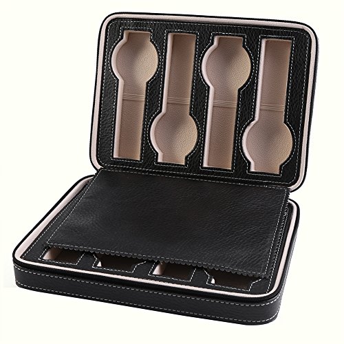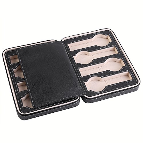 -. Feature : Made of high quality faux leather, it's durable for long time use, light weight and portable enough to be carried while traveling or business trip / This display case has 8 grids, large enough for store different watches and other jewelry accessory, makes your desk and room looks tidy and clean / Featured with a zipper, guarantee the watches won't drop out easily and easy to take out / Full covered lids helps protect your watches from dust or getting wet It's suitable for both store display or personal collect, as a decoration the case has stylish design, looks decent and luxury, a better ornament for your room / It's also a best gift for both man and women, looks full of sincerity and approP.R.Iate for most occasions