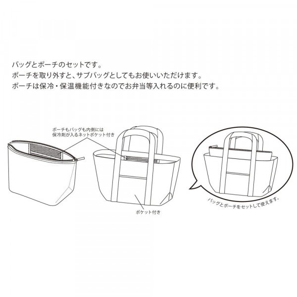ランチバッグとポーチの2点セット。ポーチは保冷・保温機能付き。