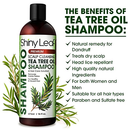 NATURAL DANDRUFF FIGHTER - Remove dandruff, dead skin cells, and scalp buildup effectively with Shiny Leaf Tea Tree Shampoo. This anti dandruff shampoo removes flakes while nourishing your hair. Use this natural anti-flaking remedy and be dandruff-free.