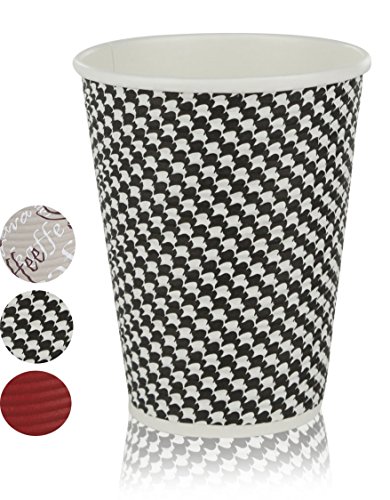 Quality Disposable Hot Coffee Insulated Cups By Golden Spoon – 50 Pack – Stylish Contemporary Ripple Design - Perfect For Coffee Shops And Bars (12 oz, Checkered Design)