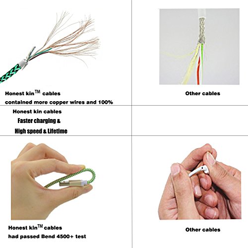 What you get: Honest kin red, orange, black, green, white nylon braided fabric Micro USB cable and Life time warranty from Honest kin.