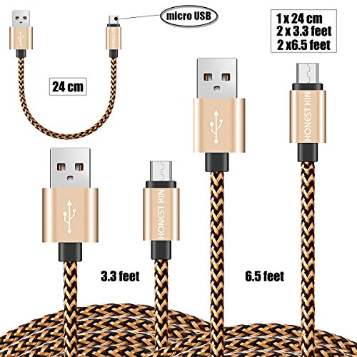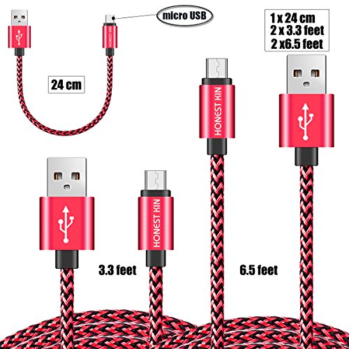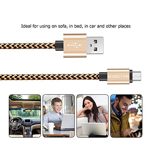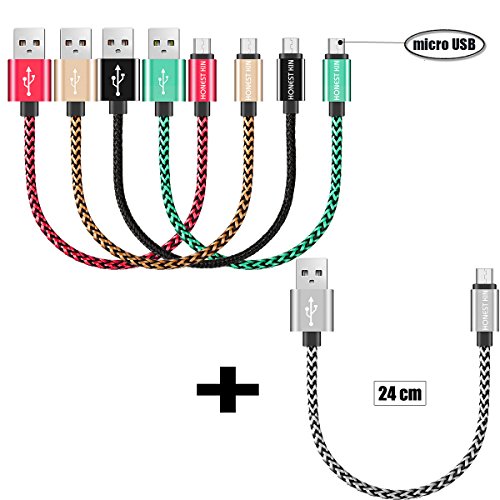 Android Charge Cables 0.7ft Extra Short Nylon Braided Honest kin [5 Pack] Sync Charger Cable Cord for Android Phones & Tablet,Samsung, HTC, LG, External Battery Chargers