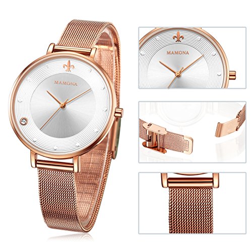 This mesh band watch is modern and sophisticated. The watch looks simple at a glance. But if look closer, you will see our thoughtful design: - Two layered dial.