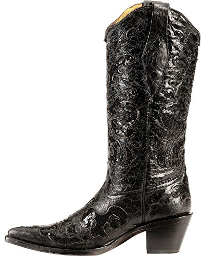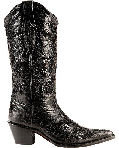Studio : Corral Publisher : Corral Binding : Apparel Product Description Corral Boots express your chic western intuition. Shop our full collection of Women's Corral Boots. This contemporary cowgirl's Corral boot is handcrafted in Leon, Guanajuato, Mexico by some of the most experienced boot makers in the country. These women's boots feature a distressed leather foot with sequin inlays under a matching 13" leather shaft. Leather lining. Single stitched welt. Easy-on pull straps and updated pointed toe profile. Imported. Handcrafted, hand finished boots - no two pairs will be exactly alike. 0