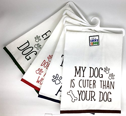 Dog Funny Sayings Kitchen Towels with Hang Loops, Set of 4