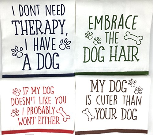 Set of 4 Towels: "I don't need Therapy, I have a Dog", "My Dog is Cuter than Your Dog", "Embrace the Dog Hair", "If my Dog doesn't like you, I probably won't either"