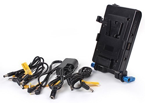 SOONWELL V Lock Mounting Plate Power Supply Splitter with 15mm Rod Clamp LP-E6 Battery Adapter DC Coupler for Camera