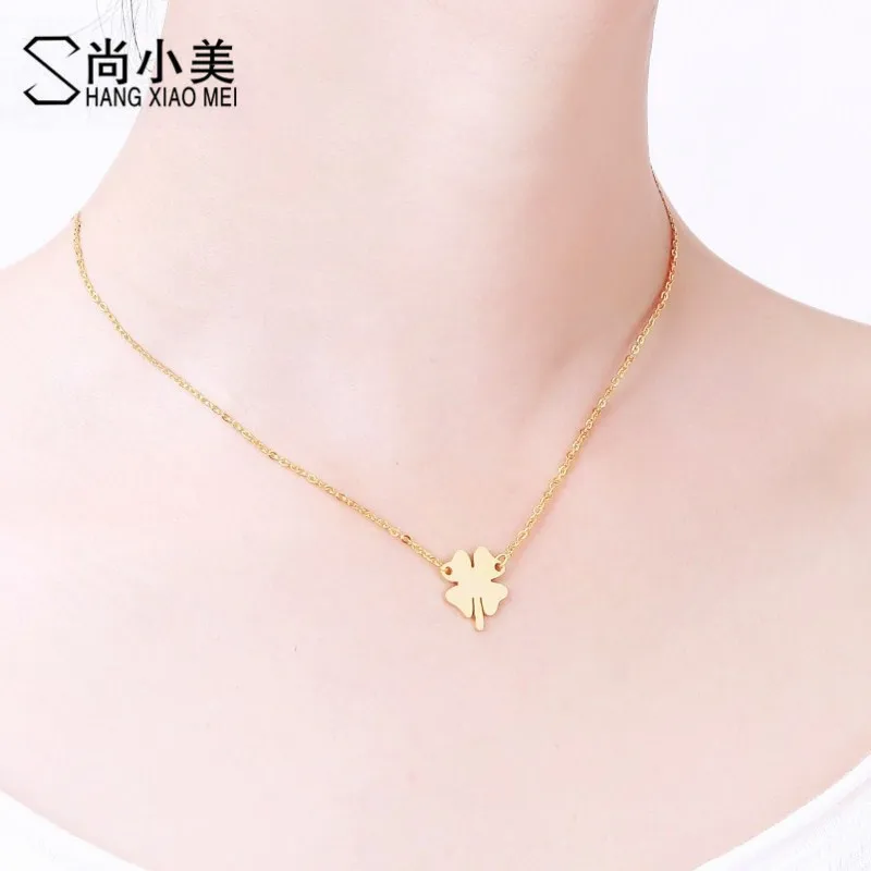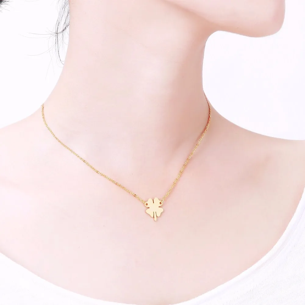 Name:Simple Women Locket Jewelry 4 Leaf Clover Lucky Plant Necklace Stainle