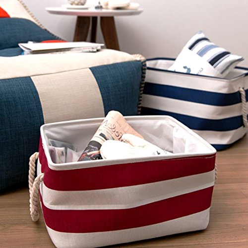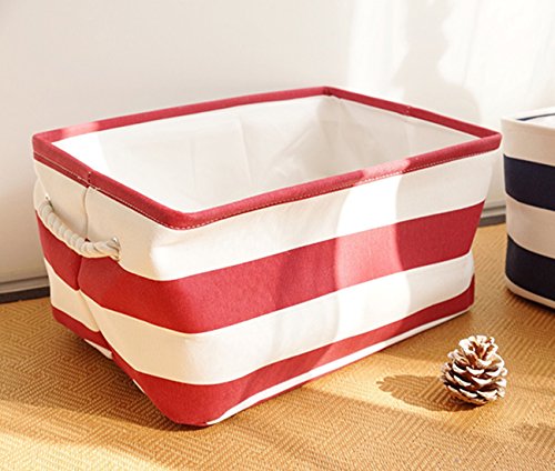 Studio : Tosnail Publisher : Tosnail Binding : Baby Product Product Description Size: Medium - 15.75" L x 11.5" W x 8.25" H; Color: Red Stripe Durable and high quality. Ramie Cotton Fabric storage bin with cotton rope handle, frame with iron circle. Collapsible construction. Folds down for easy storage while not in use. Space save and meke your stuff clean and tidy. This collapsible cotton fabric storage bin is perfect for office, nursery, closet, bedrooms, bathrooms, pantry, desk, college dorm, craft area, and more. 0