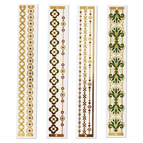 Lustria Metallic Tattoo Jewelry - Party & Event Flash Tattoo Kit - Assorted NYC-Designer Sheets & Precut Bracelets in Gold & Silver Accented...