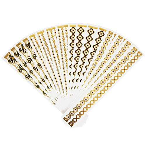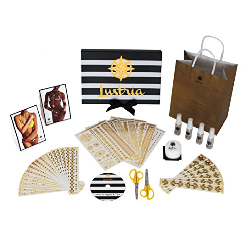 - ❤MAKES A GREAT GIFT! WHATS INCLUDED? 6 - Assorted tat sheets in gold & silver (6 Designs - 1 each), 18 - 8.5inch bracelets (3 Designs), Lustria premium party gift box, 4 Water spray bottles, Instruction card, How to apply & remove DVD, 2 Table displays, 20 Cotton pads, 2 Scissors & Gold bag to discard paper pieces.