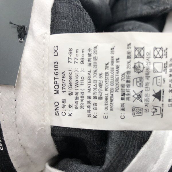 그레이컬러의 크롭팬츠로 기장은 발목까지 오면서 스판 소재를 사용해 착용감이 편한 바지입니다.