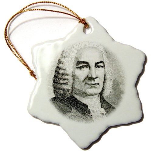 3dRose orn_83019_1 Engraving of Bach, German Composer, Historical Art-Hi12 Pri0216-Prisma-Snowflake Ornament, 3-Inch, Porcelain