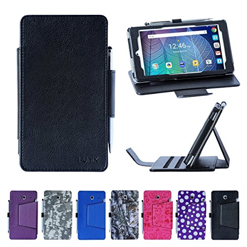 i-UniK Alcatel Onetouch POP 7 LTE Case 2016 T-Mobile Model 9015W Slim Folio Tablet Cover [Bonus Stylus] - (Black)