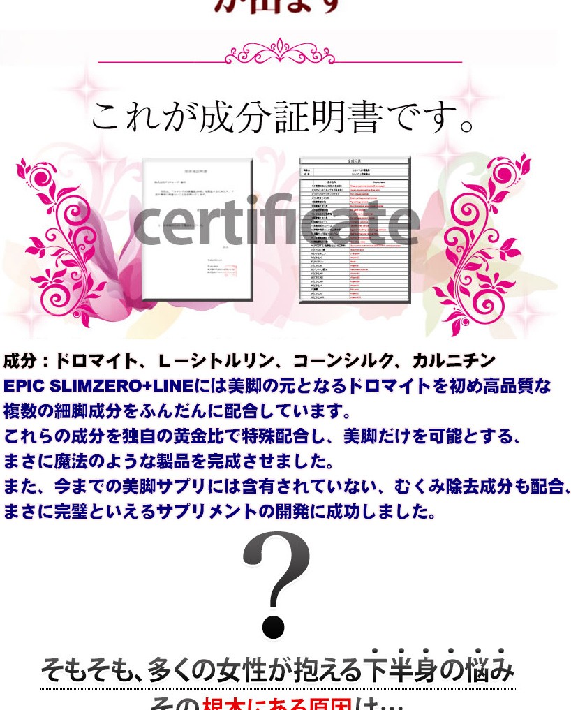 | 原材料名 | ドロマイド、還元麦芽糖、コラーゲンペプチド(ゼラチンを含む)、Lーカルニチンフマル酸塩、L-シトルリン、デキルトリン、コ-ンシルク末、コエンザイムQ10、塩化カリウム、粉末セルロース、酸化マグネシウム、ステアリン酸ca、シェラック、微粒二酸化ケイ素 |