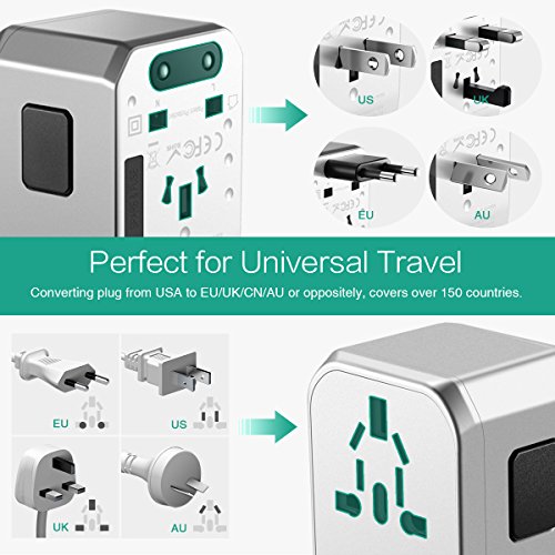 2. UNIVERSAL WORLDWIDE CHARGING: With US/EU/UK/AU plugs, offers superior compatibility and covers more than 150 countries. The universal wall AC outlet provides power to multiple electric devices like hair dryer.