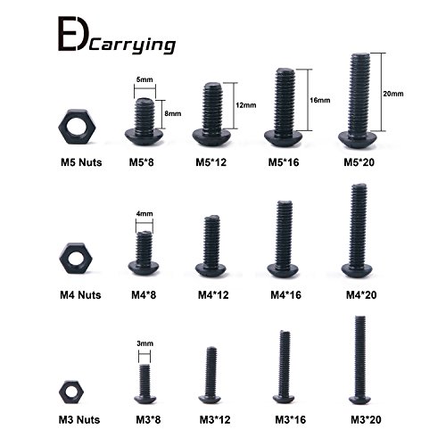 - MOST USED SIZES: EDCarrying’s collection of screws and nuts are the most used sizes in your daily work, which include M3, M4 and M5 (8, 12, 16, 20 mm length).