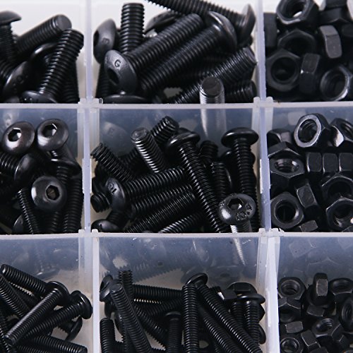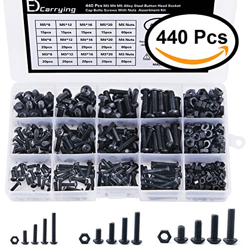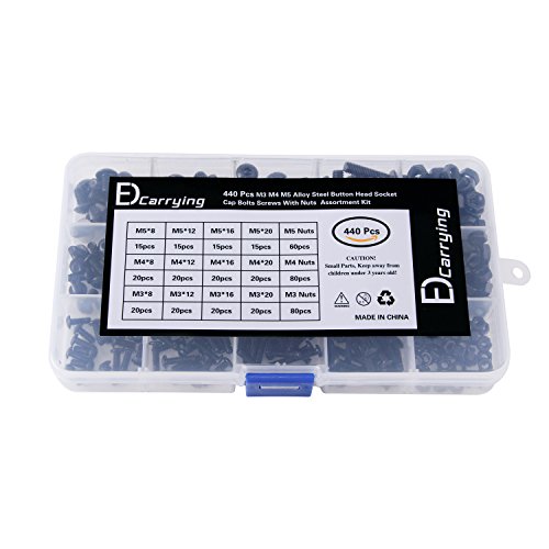 EDCarrying 440 Pcs M3 M4 M5 Alloy Steel Button Head Socket Cap Bolts Screws with Nuts Assortment Kit, Black Oxide Finish 10.9 Grade SN-440B (Black)